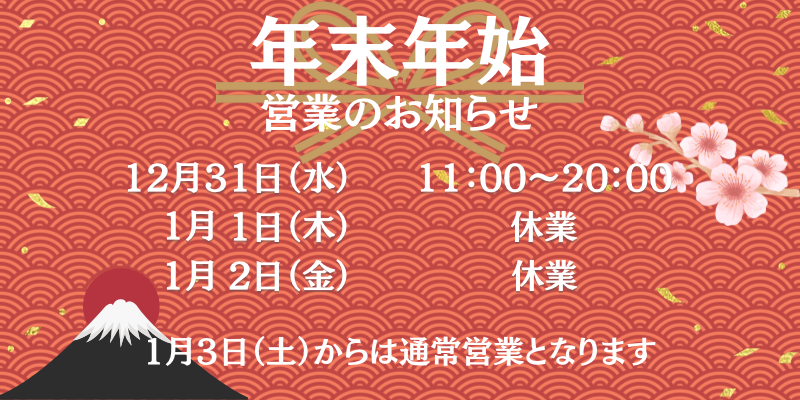 年末年始の営業日のお知らせです。